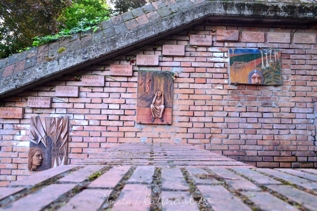 Nella parte meridionale del giardino all’italiana è presente il memoriale alle 128 vittime partigiane della provincia di Bologna realizzato nel 1975. – https://arte-4-you.com/2020/07/23/monumento-alle-donne-partigiane-bolognesi-2/
