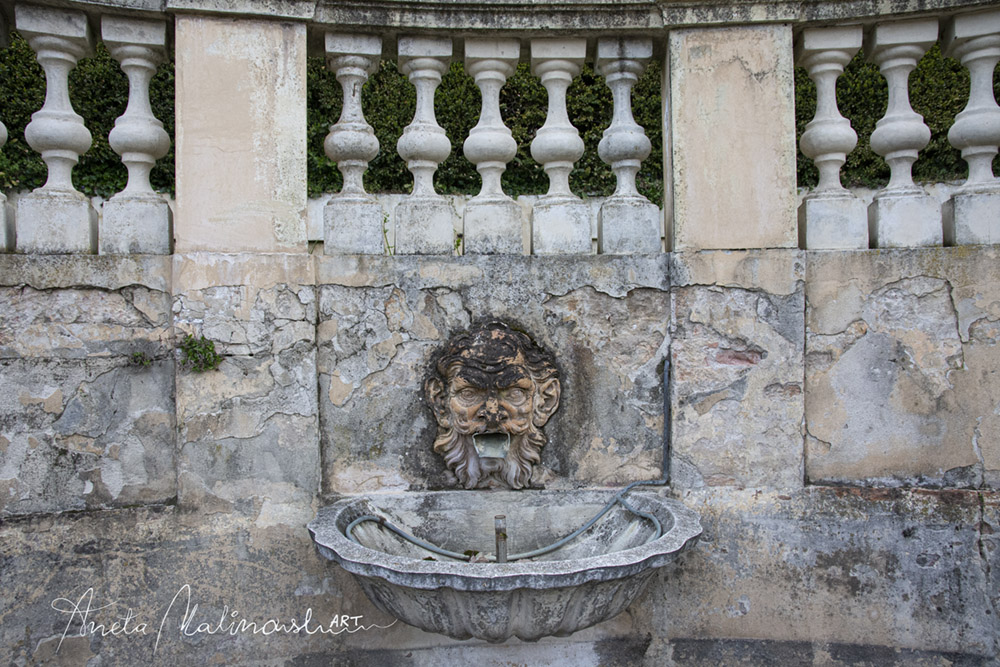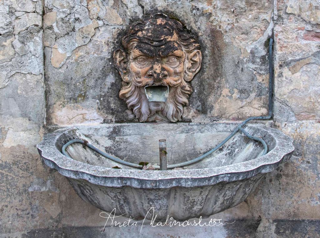 Troviamo anche vari mascheroni posizionati sulla terrazza -belvedere e sulla vasca.