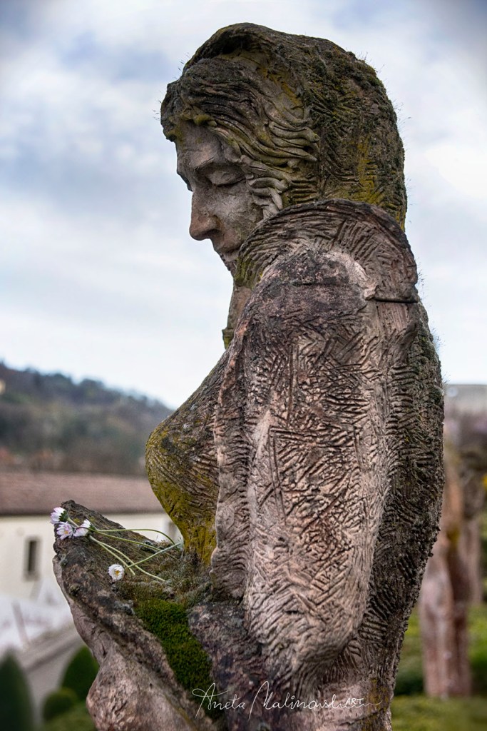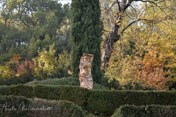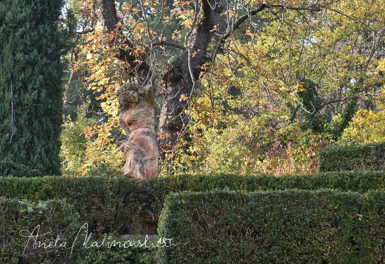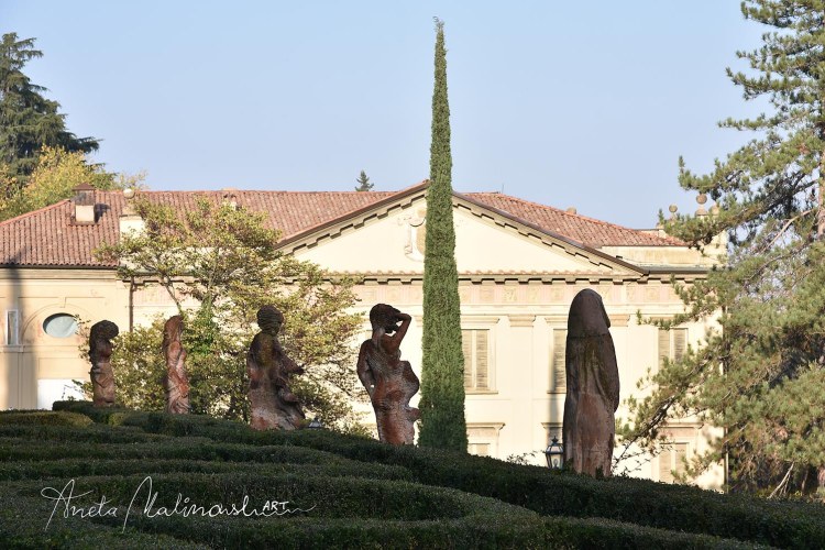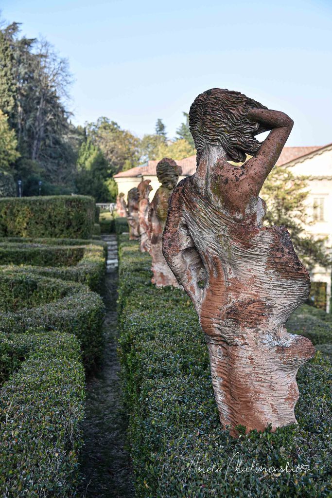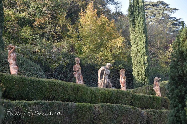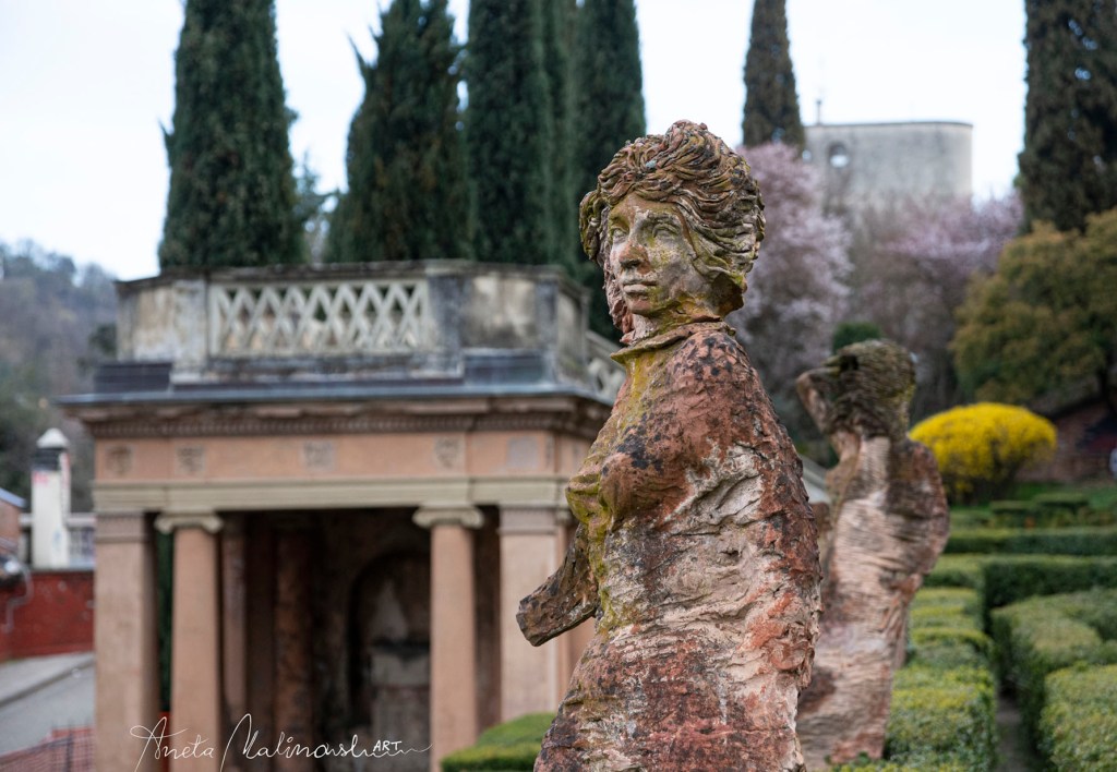 Molto interessante è una serie delle statue moderne di terracotta posizionate nel giardino disposto su terrazze. Sono le sculture chiamate ,,Dodici mesi ” (1997) di un artista bolognese Nicola Zamboni .12 stagioni di donna, ogni una rappresentata in un maniera diversa , anche se non sono antiche ,sembrano di avere centinaia di anni infatti alcune sono ricoperte di muschio, scolorate e fanno impressione di essere più antiche e ci sono ambientate perfettamente.