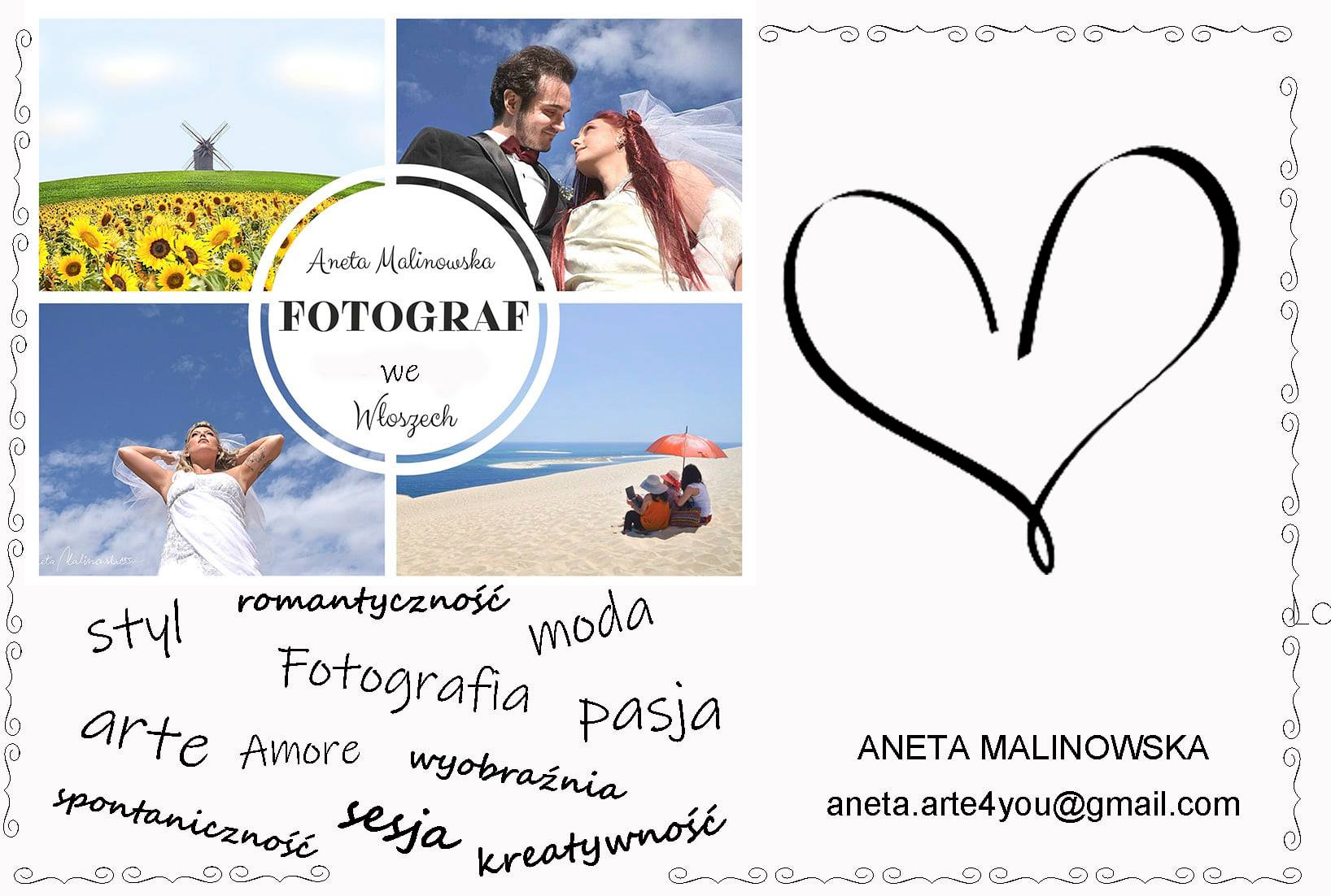 Fotograf Nazywam się Aneta Malinowska mieszkam od 20 lat w Bolonii we Włoszech .Jestem artystą i fotografem .To własnie te dwie pasje sprowadziły moje marzenia na ziemską przestrzeń .Robię to co kocham .Fotografuję i mam ciagły kontakt z ludźmi ,to włanie to co daje mi radość i satysfakcję z mojej pracy . Jesli szukasz fotografa … Continua a leggere Aneta Malinowska fotograf we Włoszech