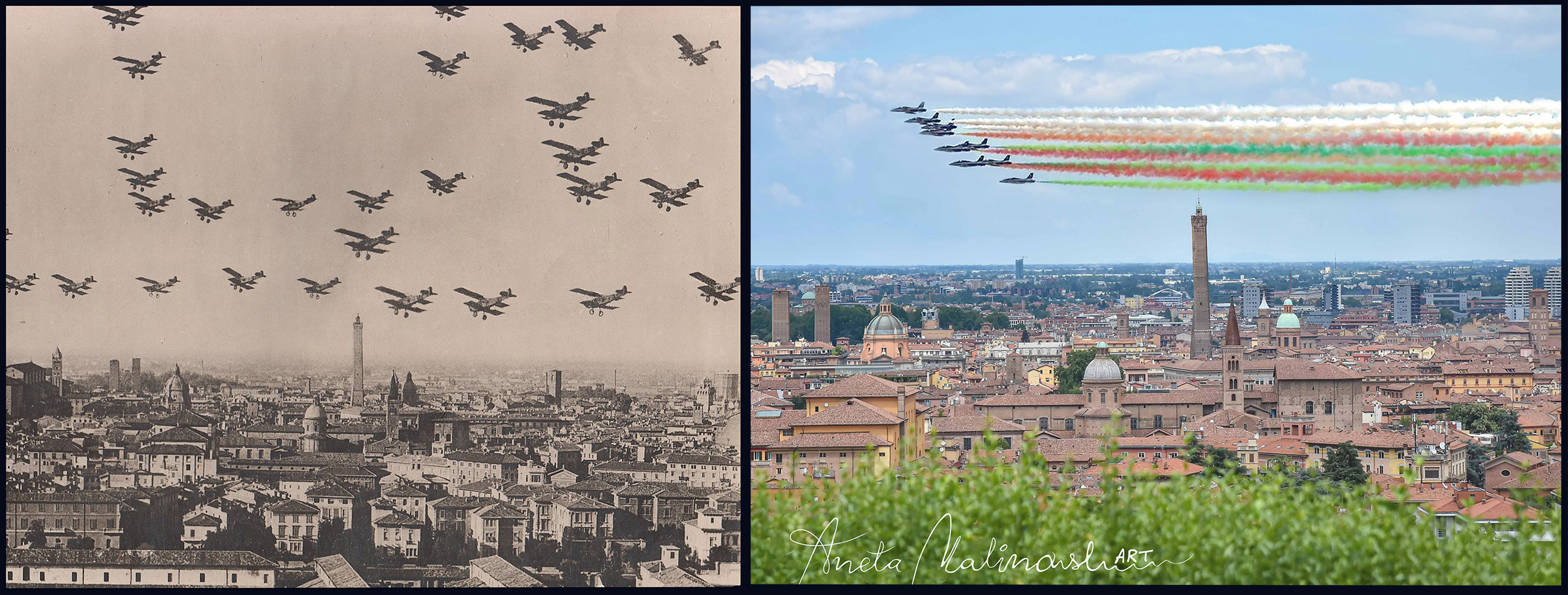 Questa galleria è stata creata grazie ai immagini della collezione di Fausto Malpensa -collezionista foto, cartoline e ricordi di Bologna. In confronto sono le foto scattate da Aneta Malinowska -artista, fotografa