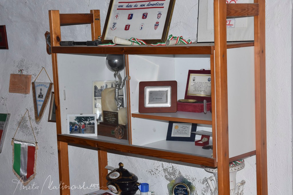 Vicino al casolare, nel piccolo spiazzo del parcheggio, un impianto mangianastri trasmette il discorso sulla Costituzione di Piero Calamandrei: finisce affermando che “allora non è una carta morta, ma un testamento di centomila morti, un impegno per l’avvenire, e se vogliamo andare dove è nata la Costituzione, dobbiamo recarci nelle carceri e sui monti dove morirono i partigiani, perché li è nata la nostra Costituzione”.