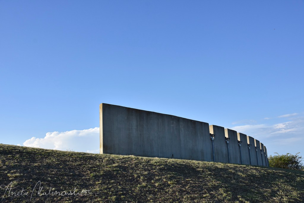 In effetti, il visitatore non ha niente da contemplare. È coinvolto, deve rivivere. Scende dalla collina costeggiando i massi, proprio come chi andava alla fucilazione. Il muro cementizio gli consente di mirare la valle con gli stessi occhi di chi sparava; le mitragliatrici sono collocate all’altezza giusta,“Questo monumento è il punto d’incontro e confronto dei passi dei partigiani uccisi con i nostri passi pesanti su di loro, di quello che loro hanno visto con quello che noi vediamo, di quello che loro hanno pensato con quello che noi oggi pensiamo. Tutti questi valori, queste considerazioni, questa partecipazione collettiva, questa realtà collettiva hanno determi-nato il monumento, che non è più monumento perché nessuna cosa conclusa poteva contenere tanta ricchezza umana.