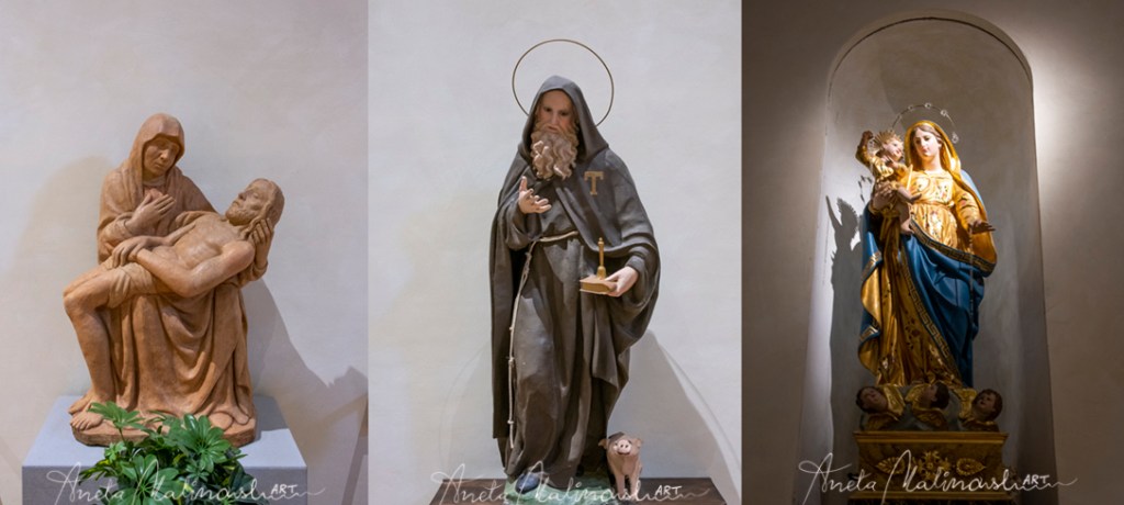 All’interno si conservano una pieta di terracotta in stile bizantino e una statua di S. Francesco opera di scultori faentini. (Ballanti e Graziani).”