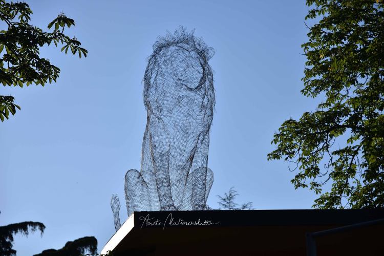 Un ricordo del passato ai Giardini MargheritaLeone in rete mettalica 100x175x175cm 2020- è fatto da un giovane artista Michele Liparesi collocata sul tetto dove una volta si trovava la gabbia dei leoni . Nel 1939 vennero donati, dai reduci africani della Decima Legio, due cuccioli di leone catturati in Etiopia, dove avevano combattuto. All’inizio degli anni 80 quando l’ultimo leone lascia la gabbia dei Giardini Margherita il piccolo zoo bolognese viene smantellato.