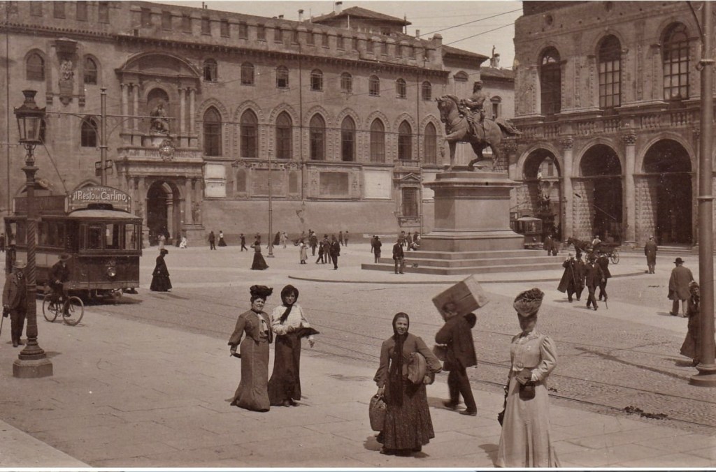 Scorcio di piazza Vittorio Emanuele nel primo decennio del ‘900. Foto della colezzione cartoline di Bologna di Fausto Malpensa