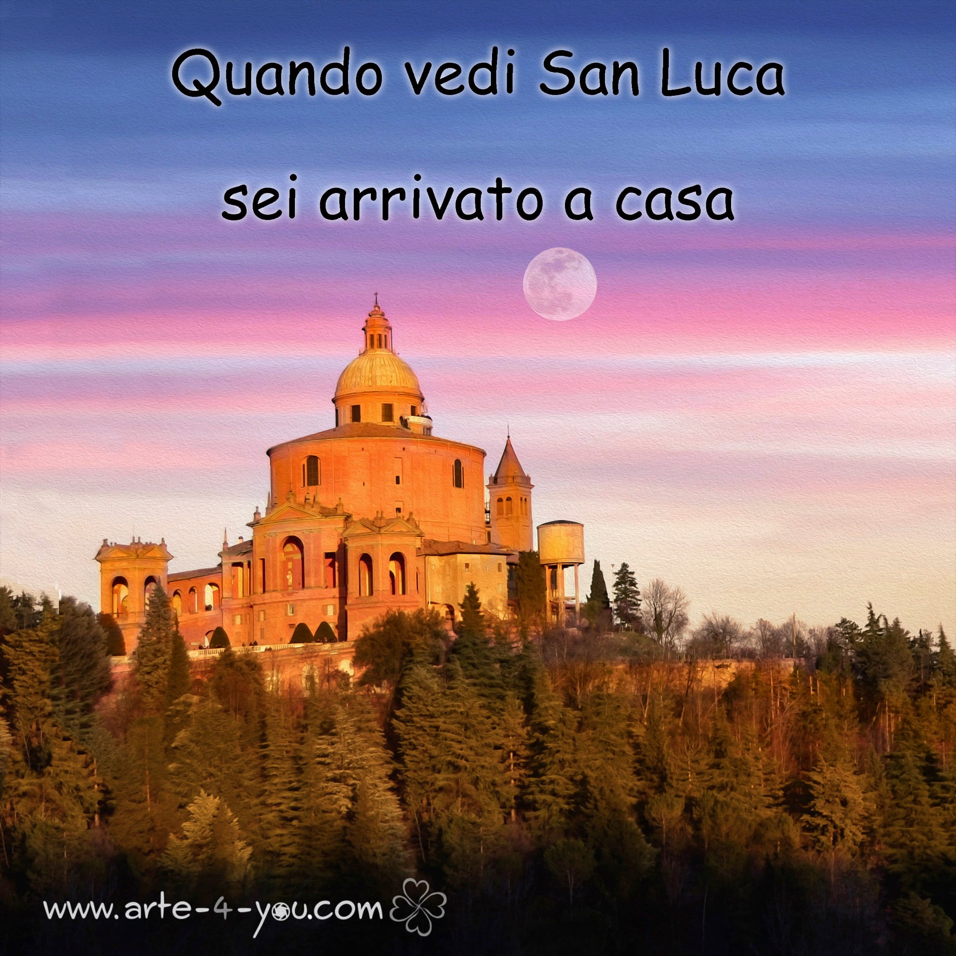 Quando vedi San Luca -sei arrivato a casa – When you see San Luca, you’ve arrived home. Many Bolognese people returning from holidays or a trip already feel at home when they see San Luca on the Guardia hill from afar. In the evening, you can see its warm light welcoming you back.
