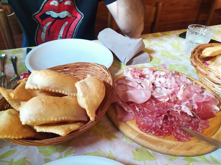 - Pinza Bolognese or ravioli with mustard (typical Bolognese dessert), rice cake