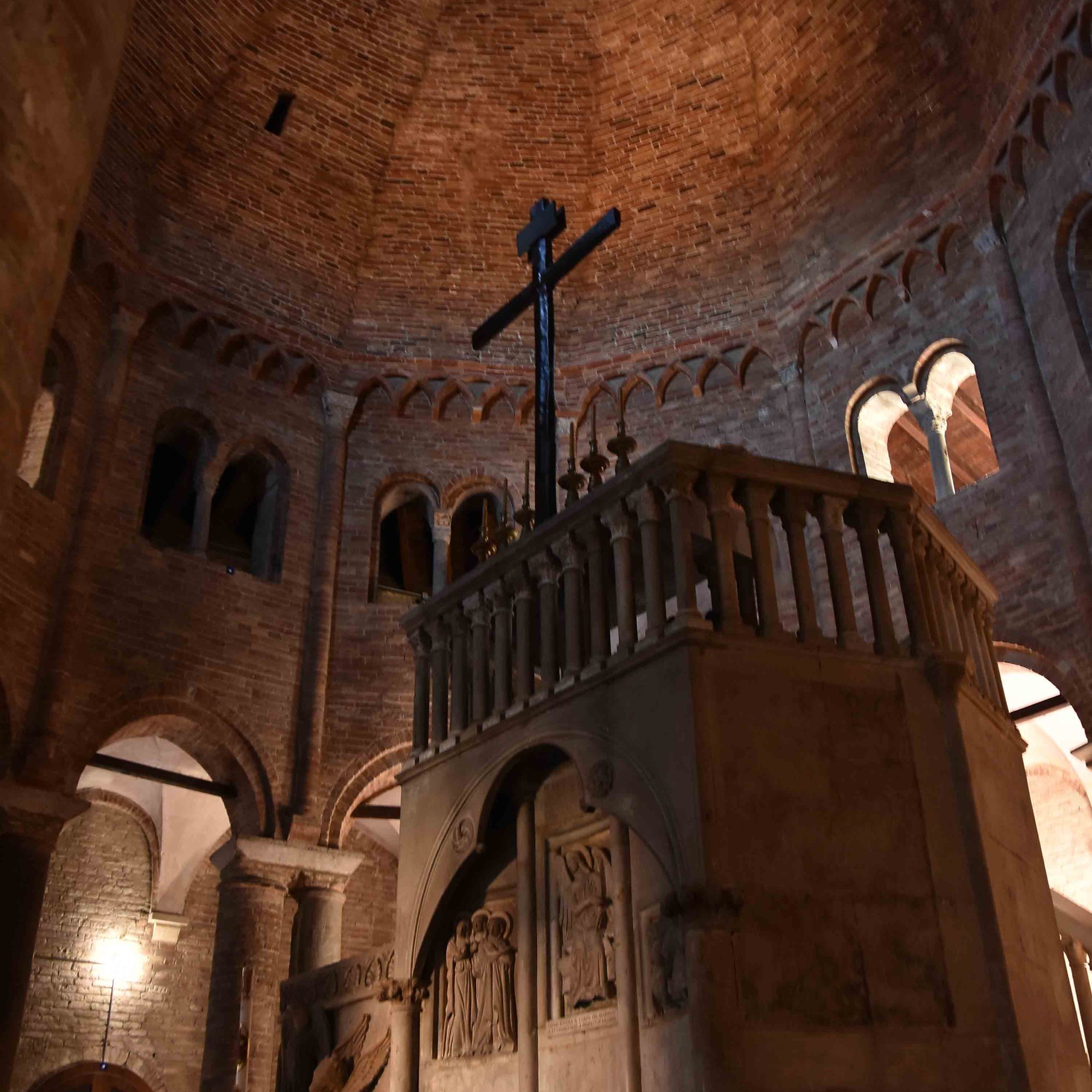 The Romanesque “Voltone della Podestà” is supported at its four corners by four columns topped with statues representing St. Petronius, St. Dominic, St. Francis, and St. Proculus, the patron saints of the city. Stand in two opposite corners and whisper to the walls; the person in the opposite corner will hear everything very clearly. It is somewhat reminiscent of a childhood game – whispering into a vacuum cleaner tube with more or less the same sound. This technique played an important role during plague epidemics, allowing the sick to receive confession without the risk of infecting the priests.